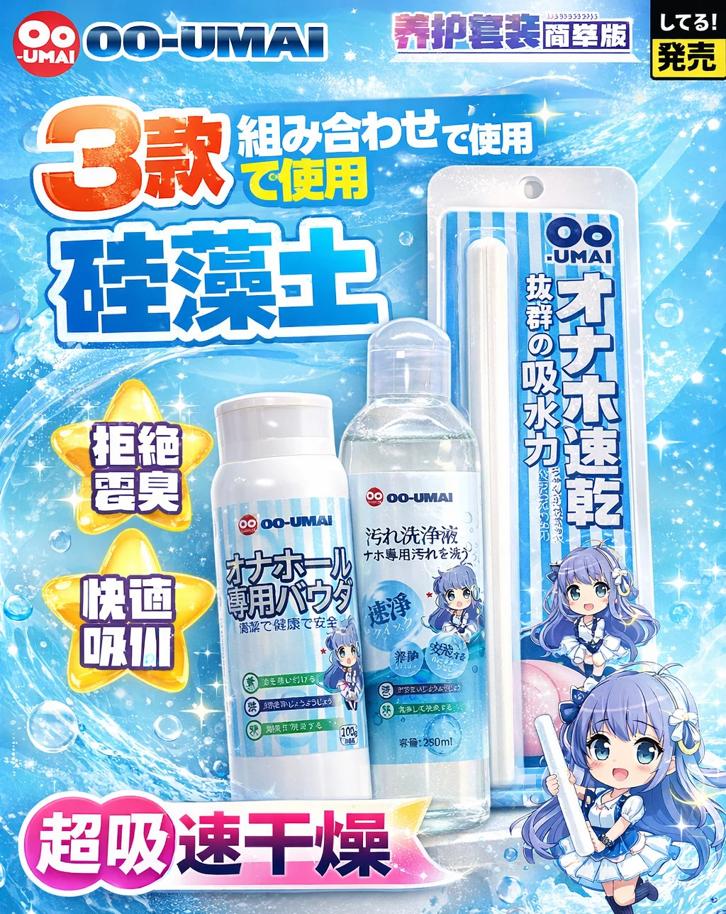 OO-UMAI Care Set เซ็ตทำความสะอาด + ดูดซับความชื้น ออกแบบมาเพื่อใช้งานร่วมกัน 3 รายการ เพื่อให้แห้ง สะอาด และลดกลิ่นอับอย่างรวดเร็ว